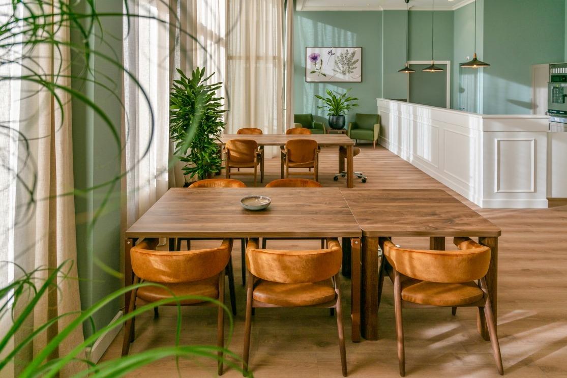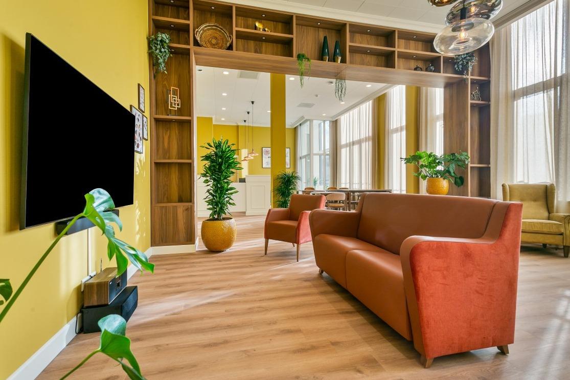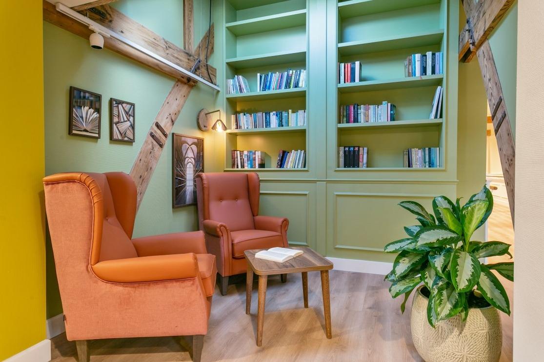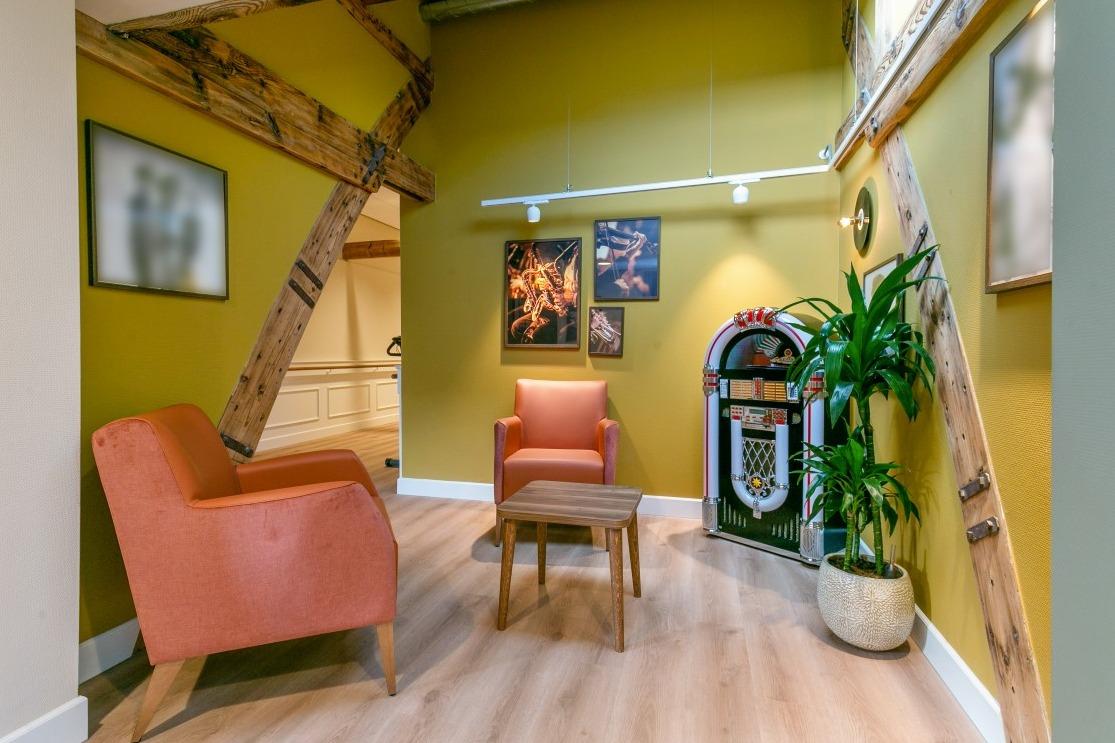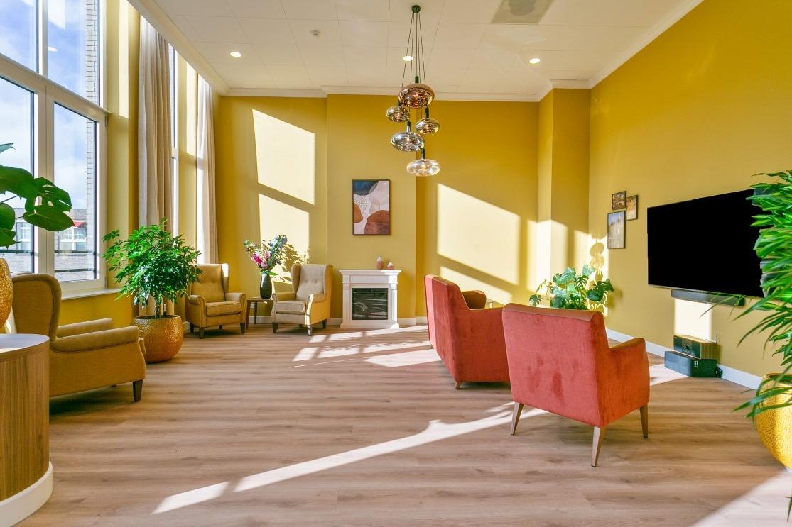 In iedere woonkamer is een gedeelte ingericht als zithoek, waar de bewoners samen tv kunnen kijken op de Rui bank of Rui fauteuils. Of waar ze bij de haard kunnen opwarmen in de comfortabele en klassieke Jacob fauteuils. Naast de woonkamers zijn er op iedere verdieping ook vier themahoeken te vinden. Deze intieme hoekjes zijn ingericht om te genieten van muziek, een goed boek of waar geschilderd kan worden. Geen wonder dat ook hier de comfortabele fauteuils te vinden zijn, voor een relaxed momentje alleen of met z’n twee. Of de bewoners zich nu graag terug trekken in hun eigen woning, liever het gezelschap opzoeken in de gemeenschappelijke ruimtes of even de kleine themakamers opzoeken, er is voor ieder wat wils in De Nieuwe Sint Jacob in Amsterdam. |