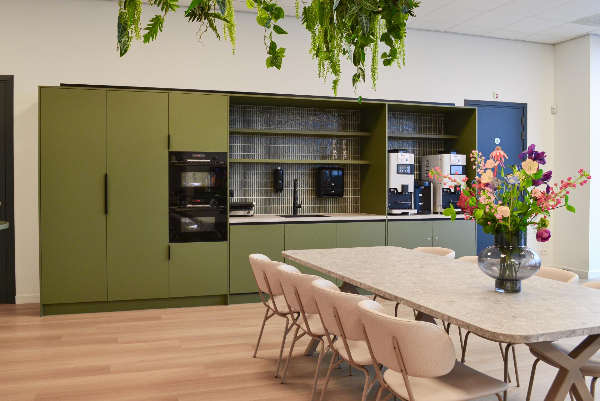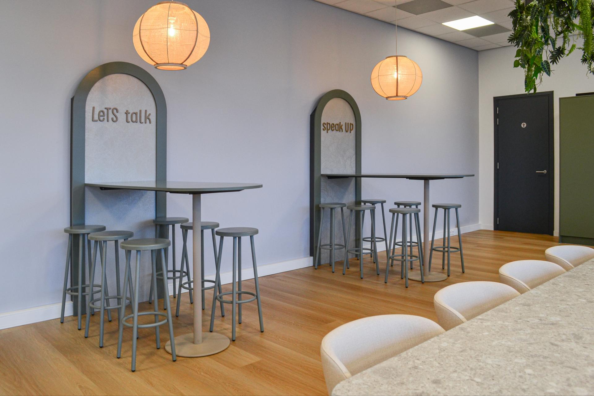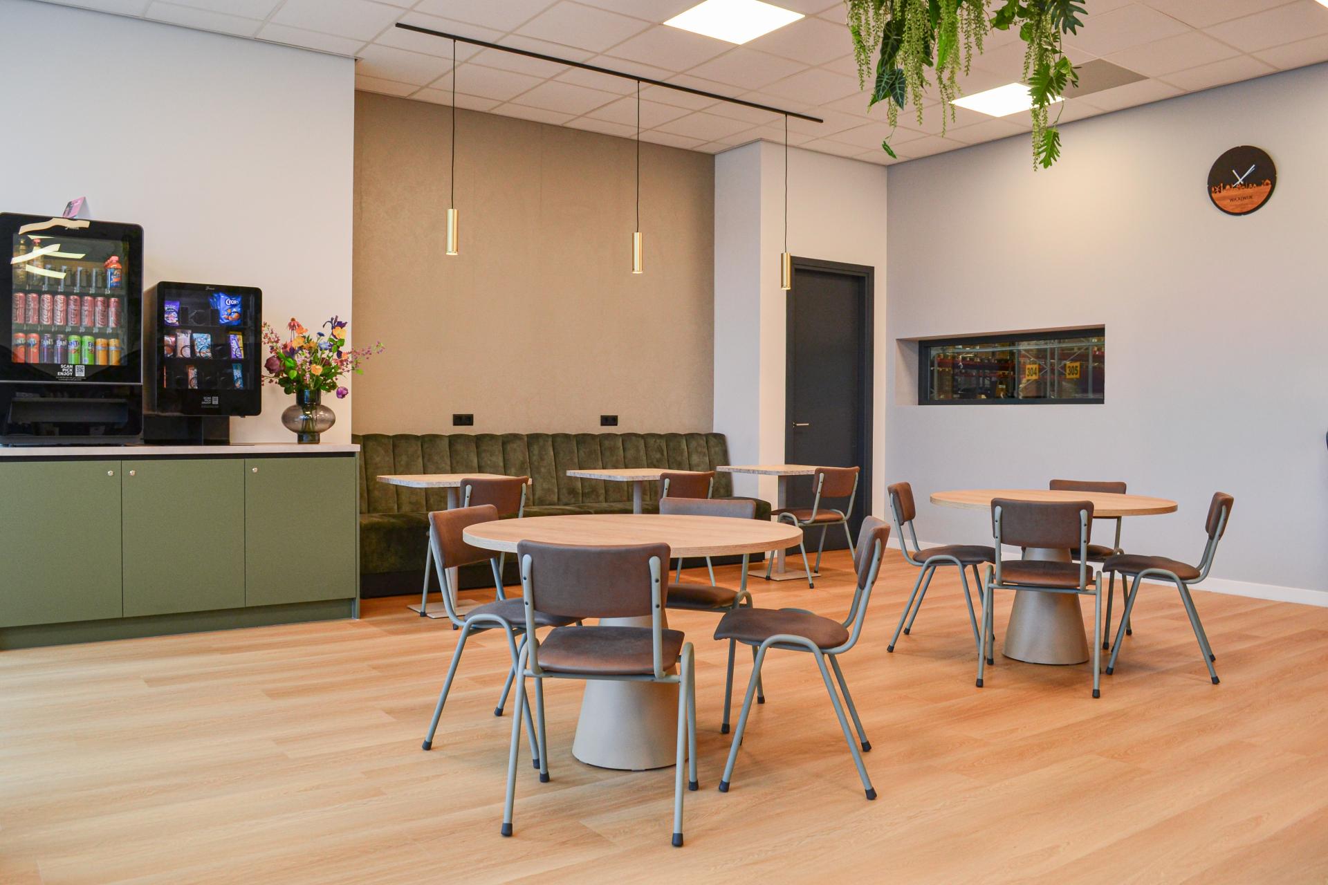 De bedrijfskantine van HealthLink in Waalwijk kreeg een welverdiende opfrisbeurt met als doel een plek te creëren waar medewerkers kunnen ontspannen, bijpraten en lunchen. Het bedrijf is actief in de medische hulpmiddelen-, diagnostische, weefsel- en farmaceutische industrie. Onze collega Femke heeft voor deze bedrijfskantine het interieurontwerp en de indeling verzorgd. Een plek voor elke werknemer |