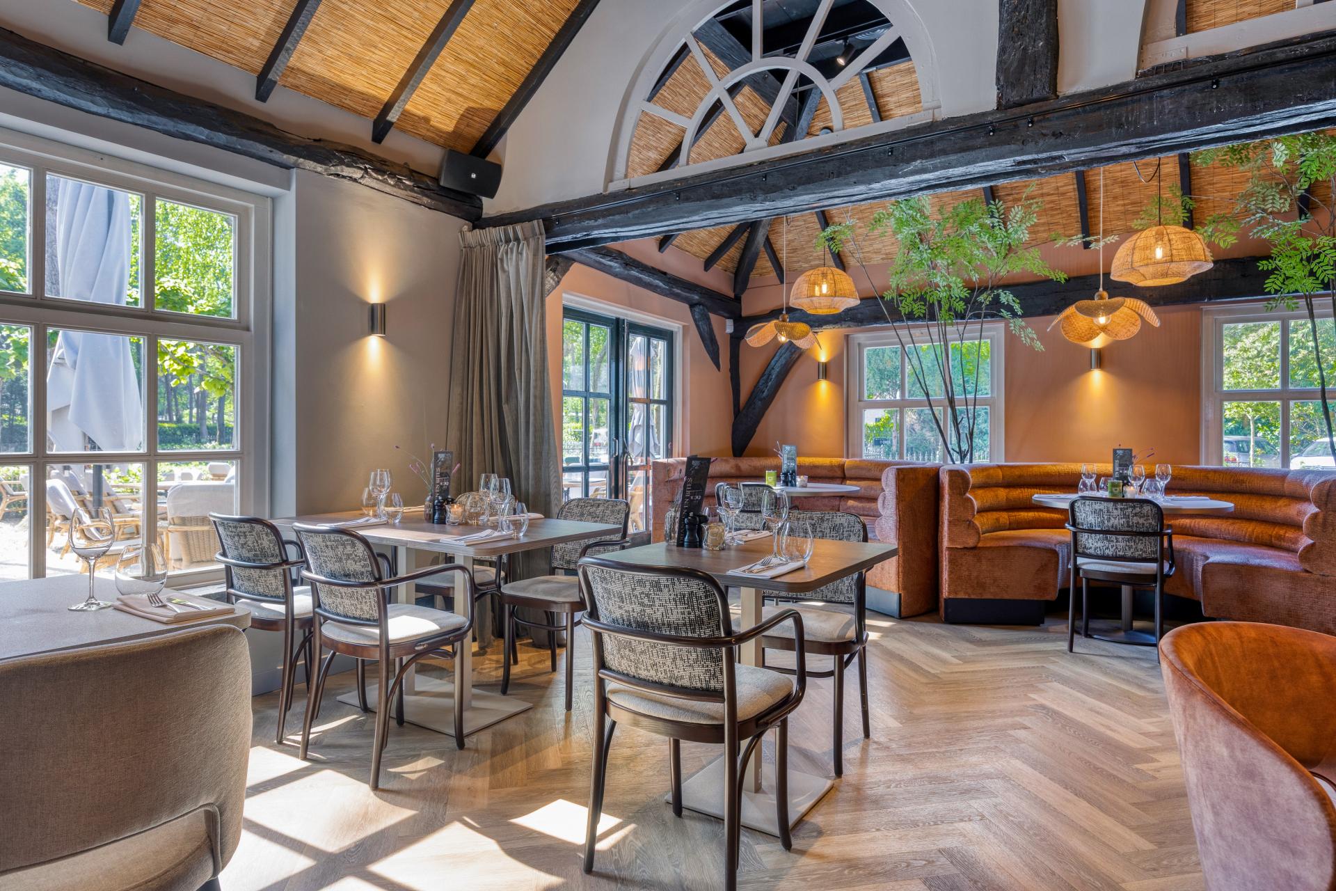 In april 2025 opende in de bossen van Oisterwijk het bijzondere horecaconcept De Hermitage. Gevestigd in een monumentaal pand van ruim honderd jaar oud, is dit de vierde horecazaak van ondernemer Michel Smolders. Het volledige interieurontwerp kwam van onze interieurdesigner Femke Joosen, met Jim Zijlstra als projectvertegenwoordiger. Het resultaat: een stijlvolle plek waar historie en modern comfort elkaar versterken. Warme tinten en rijke materialen |