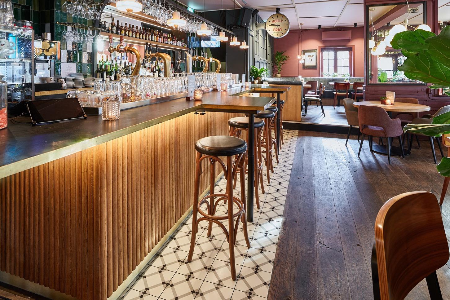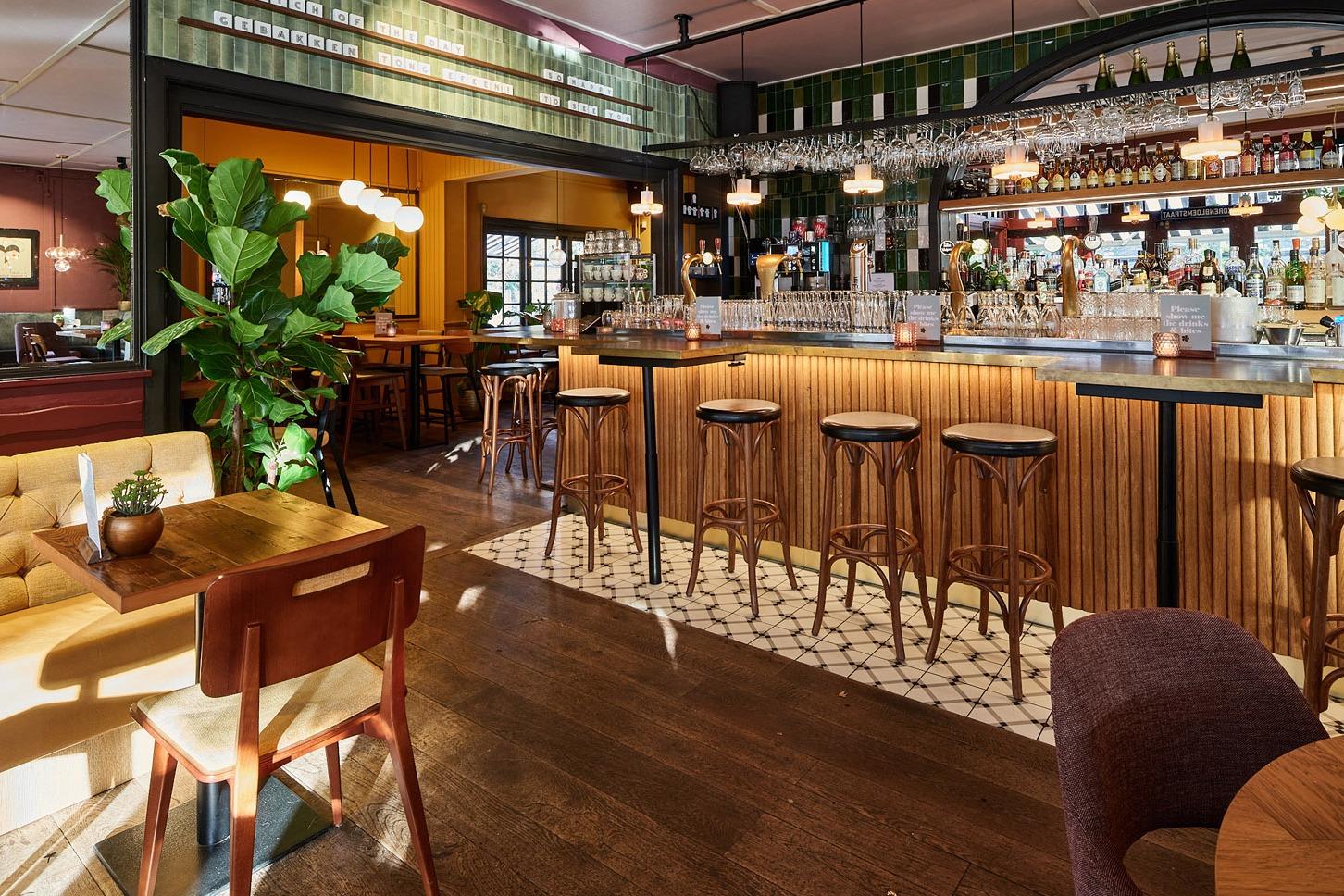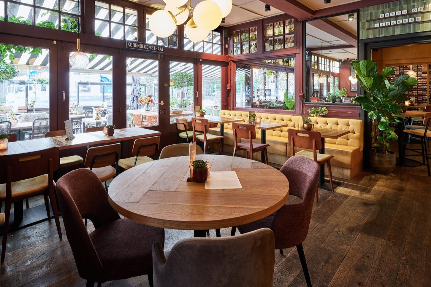 Bij De Korenbloem aan de rand van het centrum van Tilburg, is gastvrijheid een heel groot goed. Daar zijn ze pas tevreden als de gasten hun liefde en passie voor gastvrijheid hebben kunnen proeven, zien en voelen. Vanaf 1985 kun je in een echte huiskamer setting genieten van hun borrel, bites en food, maar intussen was het interieur van de huiskamer wel toe aan een kleine update. En dus gingen wij, naar het ontwerp van Nicole van Beers, aan de slag met een opvallend en ongedwongen nieuw interieur. Authentiek Cafégevoel Binnenin De Korenbloem vallen direct de muren op die kleurrijke nisjes vormen. Bij binnenkomst begroeten warme, mosterdgele muren de bezoekers, waarmee direct een aangename sfeer ontstaat. Deze ruimte biedt een verscheidenheid aan hoge zitgelegenheden, met een mix van ronde en rechthoekige hoge tafels, allen voorzien van een Inox onderstel en massief eiken tafelbladen met een subtiel visgraatmotief. Het authentieke cafégevoel komt tot leven met de klassieke Bistro-krukken en gestoffeerde Holt S en New Retro S krukken in zachte groene en gele tinten, perfect passend bij de muurkleur. Tegen de muren zijn hoge, maatwerk banken geplaatst met een gebombeerde zitting in dezelfde warme mosterdkleur. Opvallend origineel is de wanddecoratie: een nooddeur 'behangen' met cassettebandhoesjes voor een leuke retro vibe, terwijl tussen de toiletdeuren een rek tot aan het plafond is gevuld met diverse bierflesjes. |
