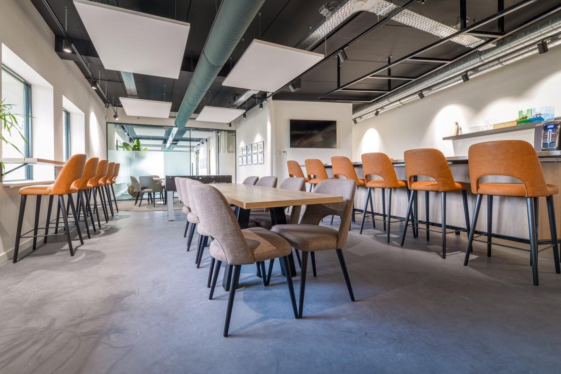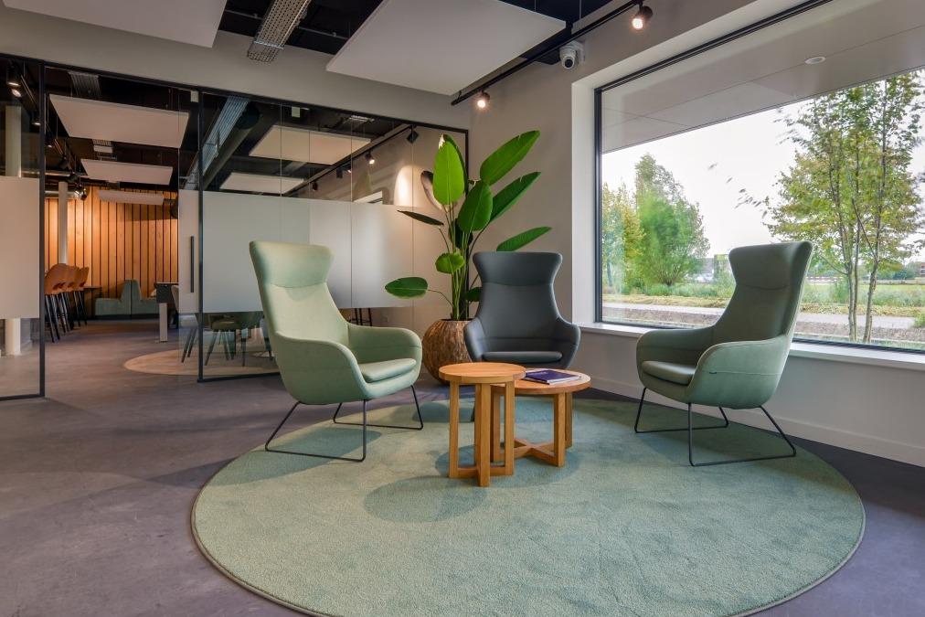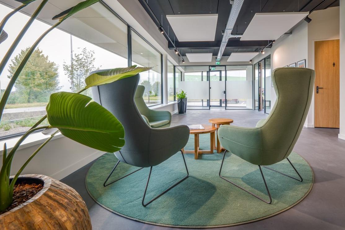 Sinds de Coronacrisis zijn we ons meer en meer bewust geworden van het belang van een goed binnenklimaat. Muffe en stilstaande lucht kan vermoeidheid en hoofdpijn tot gevolg hebben, maar ook de verspreiding van een ziekte afremmen. Op plekken waar veel mensen samenkomen, denk aan scholen, winkels of kantoren, is doeltreffende luchtverplaatsing essentieel. KE Fibertec bevindt zich op dit onmisbare vakgebied. Zij ontwikkelen, produceren en verkopen een ‘goed binnenklimaat’ oftewel luchtverdeelsystemen op basis van textieltechnologie. Voor hun eigen kantoor in Strijen zit het met de luchtcirculatie dus wel goed, maar wij weten dat goed kantoormeubilair minstens zo belangrijk is. En op dat onmisbare vakgebied mochten wij hen de afgelopen maanden adviseren. Buiten naar binnenHet kantoor van KE Fibertec bestaat uit verschillende ruimtes: een wacht- en ontvangstruimte, kantoren, vergaderruimte en kantine. Voor het plan moest er rekening gehouden worden met het aantal werknemers, verschillende zitmogelijkheden en de juiste sfeer. Onze collega en interieur designer Karlijn ging met deze vragen aan de slag. Zij werd meteen geïnspireerd door de omgeving van het kantoor. “Ondanks dat het pand op het industrieterrein ligt, zie je dat het pand omgeven wordt door veel groen. Die frisse kleuren heb ik op de beneden verdieping ook toegepast, waardoor de scheiding van buiten en binnen veel natuurlijker wordt.” Dat begint al bij de entree, waar drie moderne Crona Lounge fauteuils een fijne wachtplek creëren. Deze hoek wordt door het groene vloerkleed en de beplanting echt uitnodigend gemaakt. KantineAchter de entree bevindt zich de bedrijfskantine die tevens dient als ontvangstruimte. Een plek voor ontspanning, rust of sociale interactie met je collega’s of klanten. |