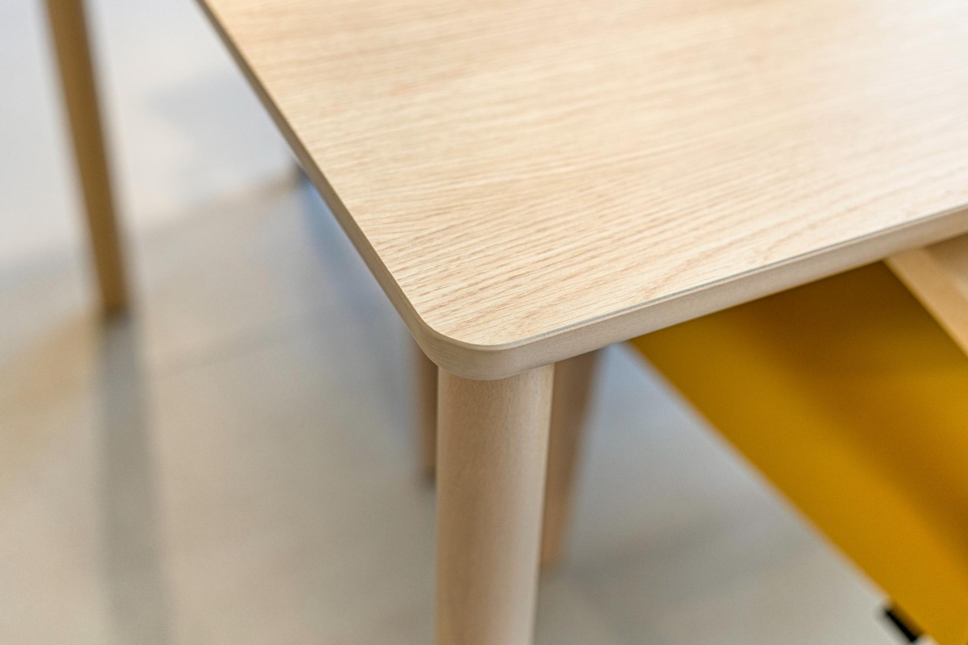 De huiskamers zijn ingericht met Oregon Rondo-tafels en Veda A-stoelen. De stoelen hebben dezelfde kleur als het wandmeubel, zodat het kleurenthema uit de gang naadloos wordt doorgetrokken naar de huiskamers. Om het meubilair af te wisselen is er een ronde Inox-tafel met drie Vikki-stoelen geplaatst.