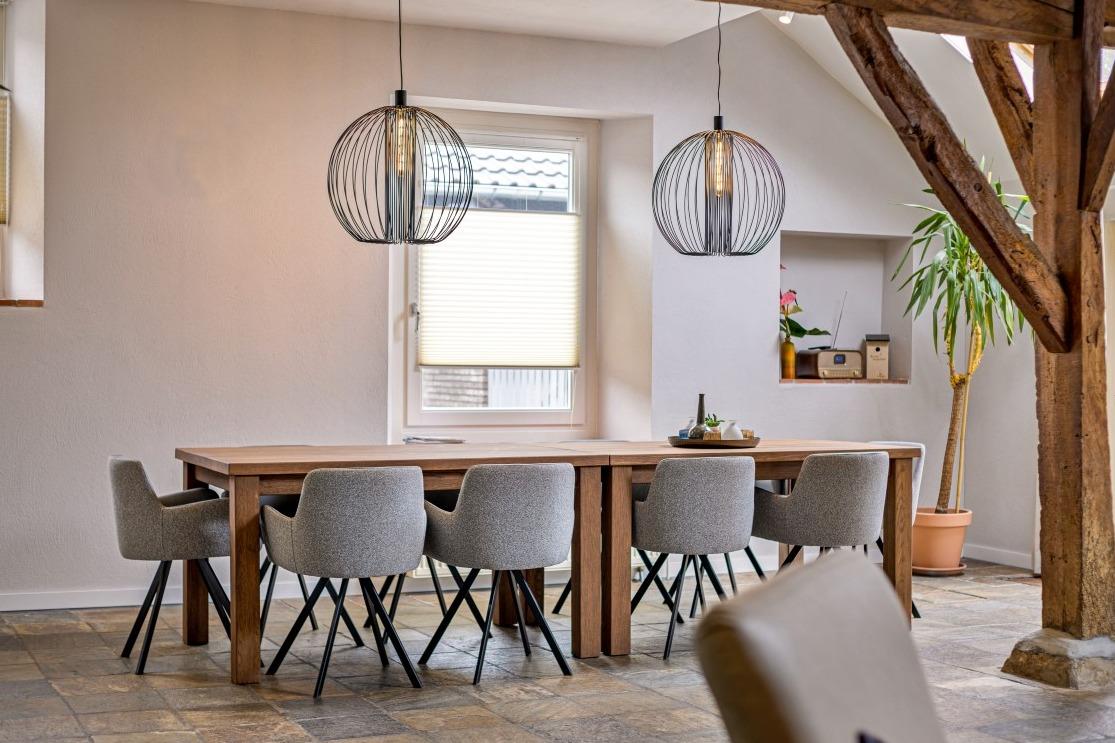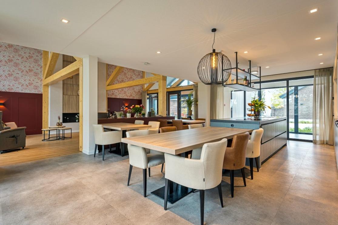 Welkom bij Lindezorg, een kleinschalig en vernieuwend zorginitiatief dat zorg en ondersteuning biedt aan mensen met dementie, die niet meer in staat zijn zelfstandig thuis te wonen. In het pittoreske Sevenum lag een bestaande boerderij die de perfecte basis bleek te zijn voor het zorgconcept. Hier zijn aan weerszijde twee woonvleugels gekoppeld met ieder twaalf studio’s. In samenwerking met onze partner Martin Cuypers mochten wij de gezamenlijke woonkamers, leefkeuken en overlegruimte inrichten. Thuisgevoel Al bij binnenkomst wordt je als bezoeker of bewoner gegrepen door het imposante hoge plafond. Samen met de houten balken en de raampartijen krijgen de woonkamers en leefkeuken een open en frisse uitstraling. Er zijn verschillende zitmogelijkheden gecreëerd waardoor bewoners hun gewenste plek in kunnen nemen. In de keuken zijn verschillende rechthoekige tafels met dubbele kolompoot geplaatst, in combinatie met de comfortabele Gill armstoelen in caramel en beige stofferingen. |