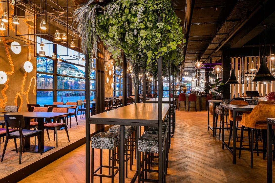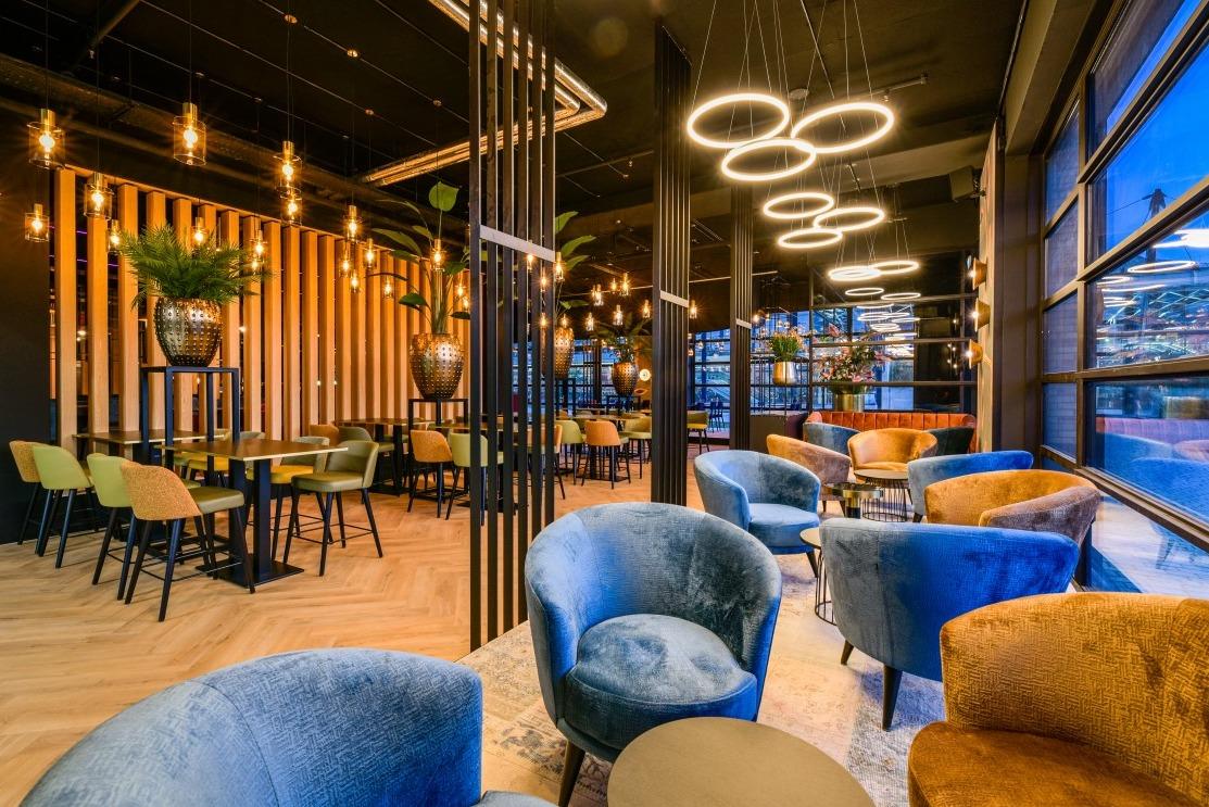 In het hartje centrum van Tilburg vinden we het moderne gebied de Spoorzone. Hier werd vroeger door honderden arbeiders gesleuteld aan treinen en locomotieven. Inmiddels is het een bruisend gebied met volop bedrijvigheid én vele horecagelegenheden. De nieuwste horeca aanwinst van de Spoorzone? Mood van Eveline Wu, zij opent in hartje Tilburg haar vierde Mood vestiging. Naast het heerlijke eten zal ook het interieur ervoor zorgen dat je in de perfect mood komt. Creatieve hoogteverschillen Dat kleurrijke en uitbundige interieur mochten wij met veel trots en enthousiasme samenstellen. De grote ruimte is opgedeeld in verschillende zitmogelijkheden, zodat er voor iedereen een geschikte zitplek te vinden is. Er is op een creatieve manier gebruik gemaakt van het hoogteverschil, aan de bar is het mogelijk om plaats te nemen aan de velours beklede roze Ema 1 S krukken of de lange reeks met blauwe Ema 1 stoelen met- en zonder opening in de rugleuning. Het middelste gedeelte van de ruimte wordt gesierd met onze hoge, verrijdbare Greentafel met groenbeleving. Deze worden gecombineerd met de Cube krukken in een opvallende eclectische print. |