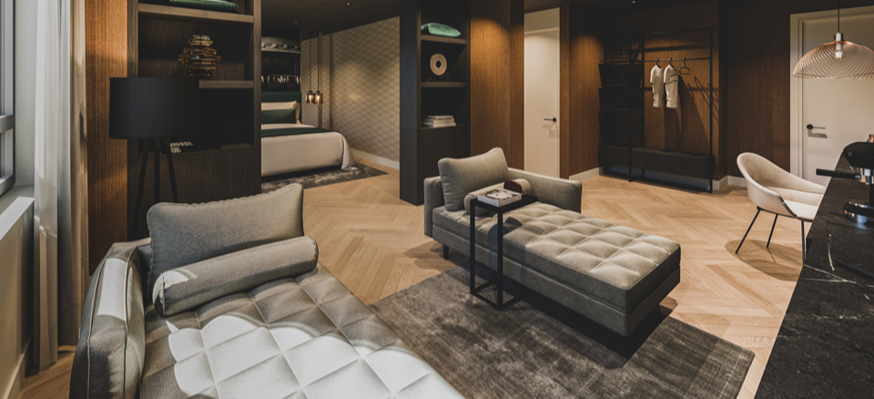 Naast veel horeca-, zorg- en leisure projecten, ontwerpen wij ook menig hotelsuite. Net als bij de andere sectoren staat gastvrijheid hoog in het vaandel. Maar daarnaast moet geborgenheid en luxe ook centraal staan. Wanneer je als gast ergens overnacht wil je het warme, geborgen gevoel van thuis voelen. Maar ook ontsnappen aan de alledaagse sleur en je laten prikkelen door een nieuwe, luxe omgeving.