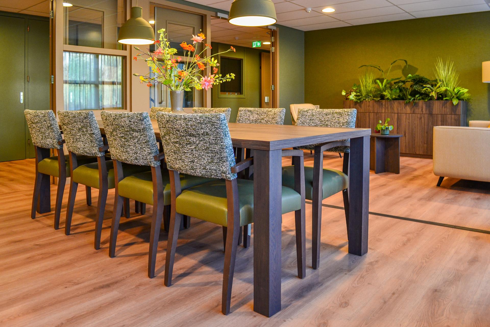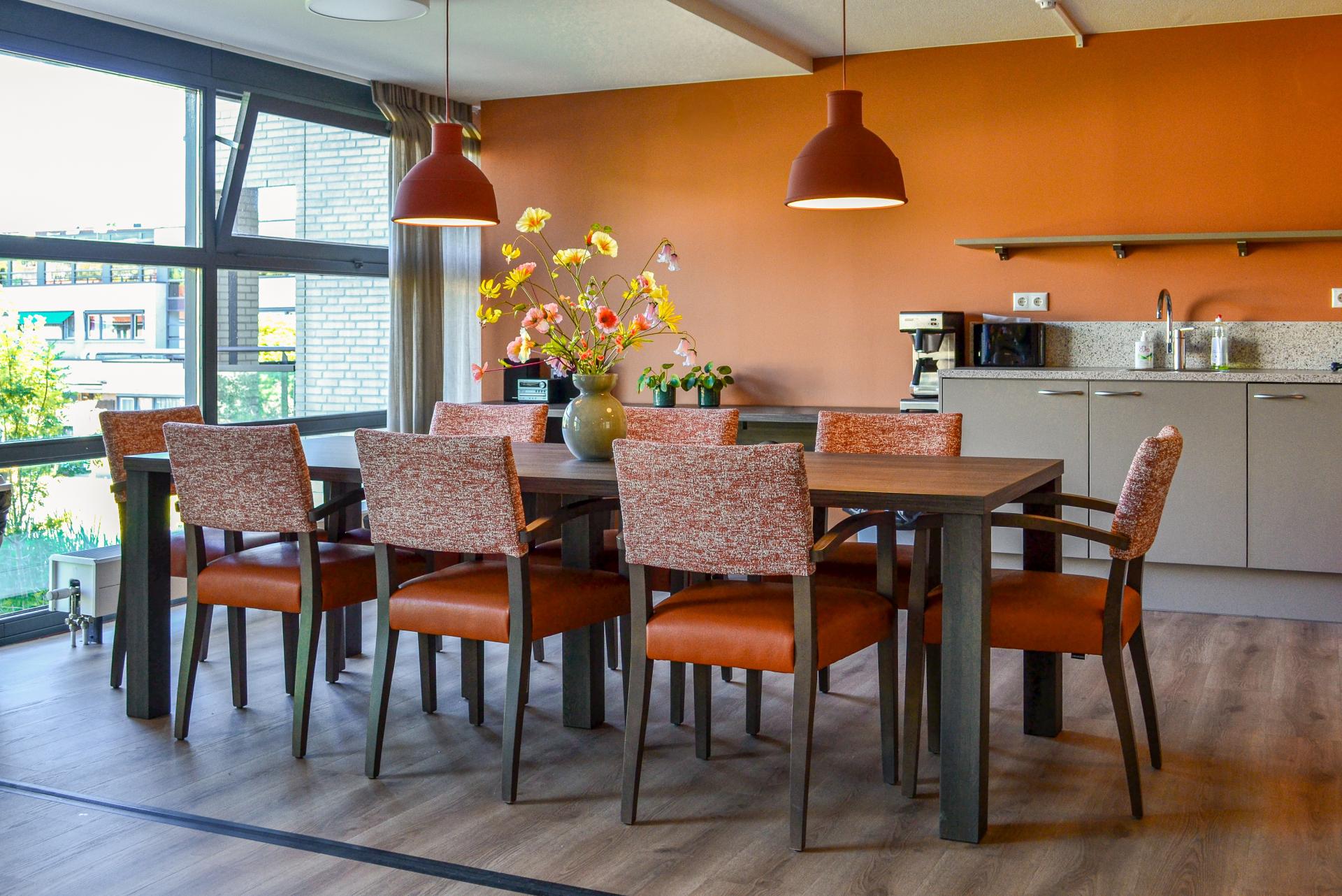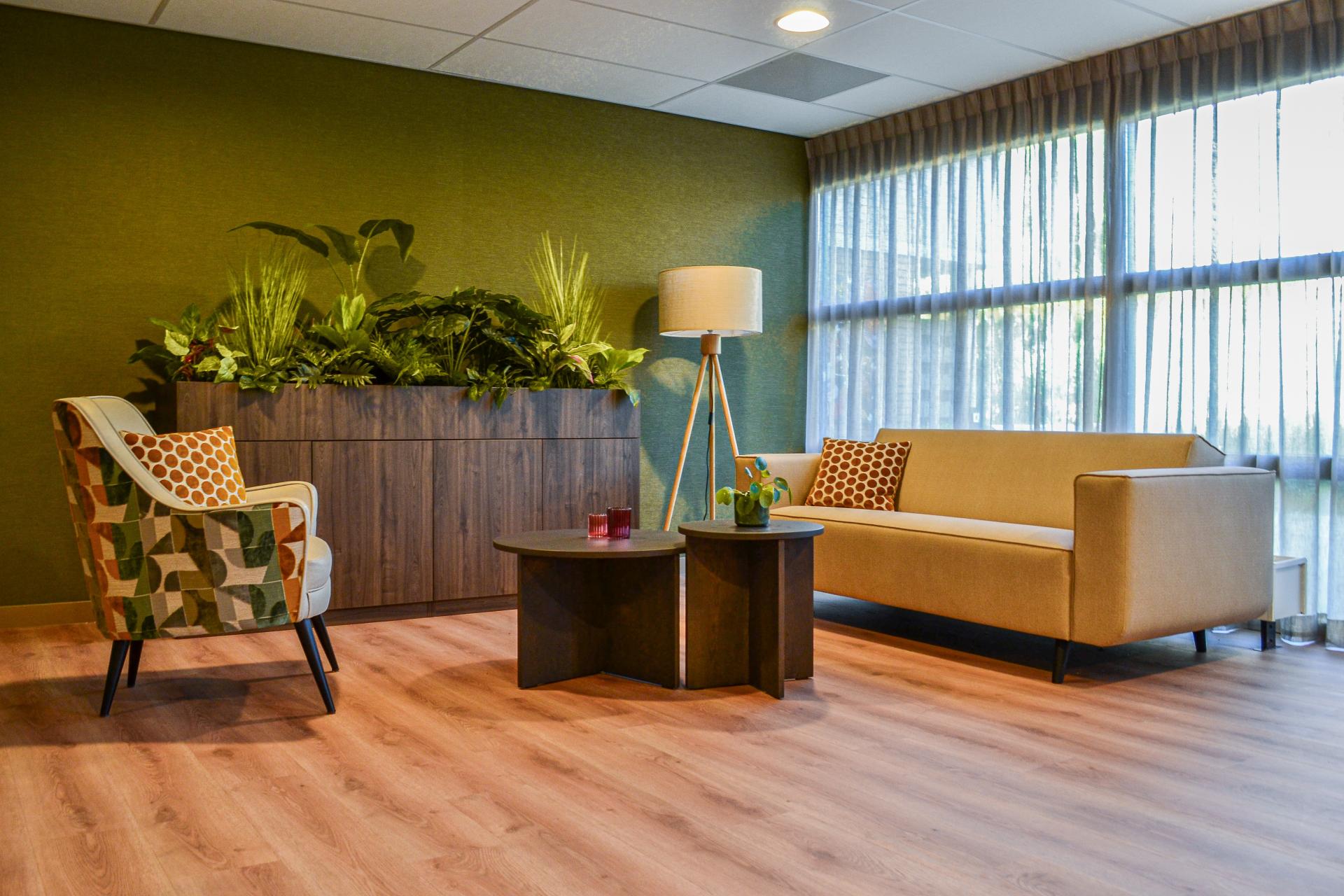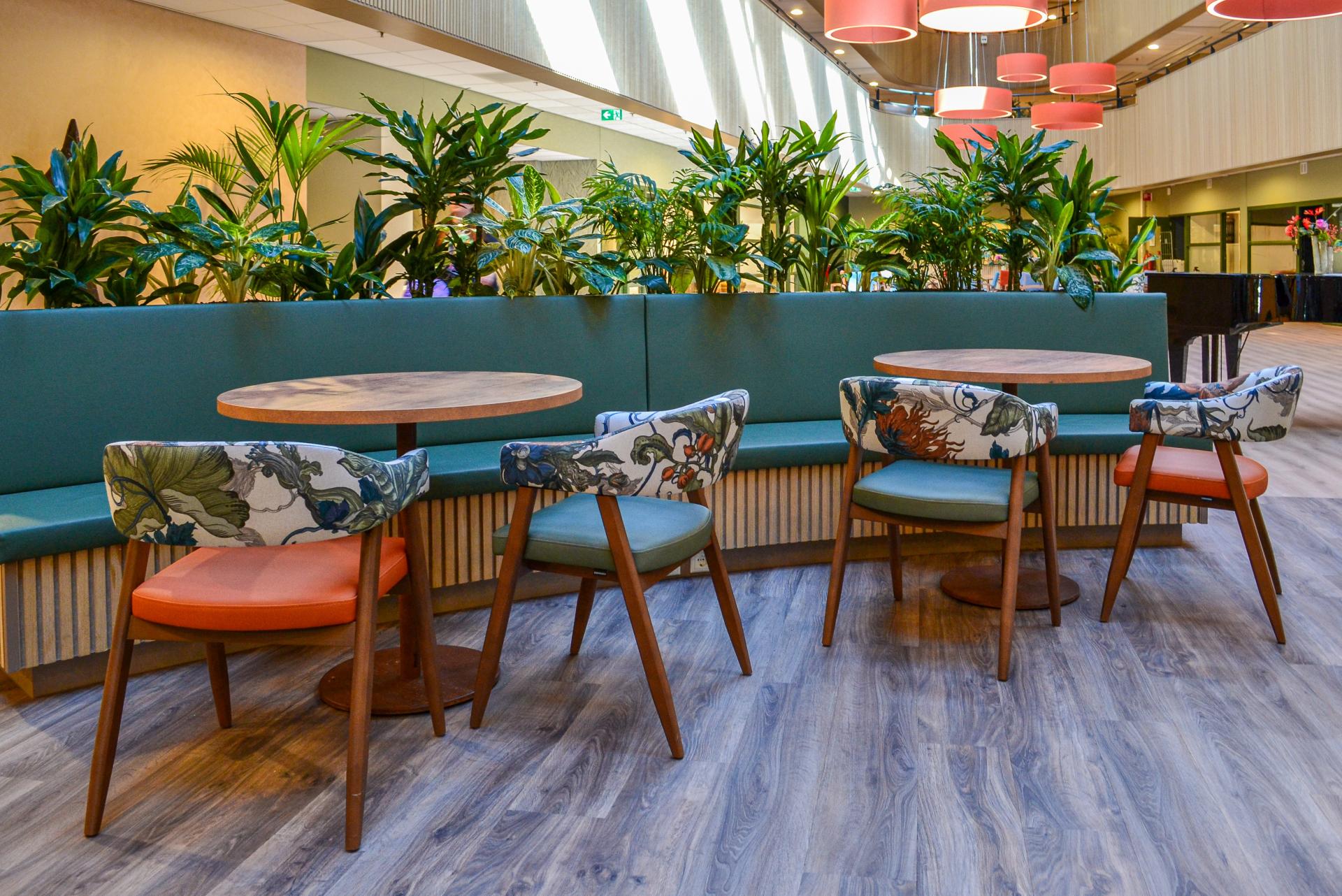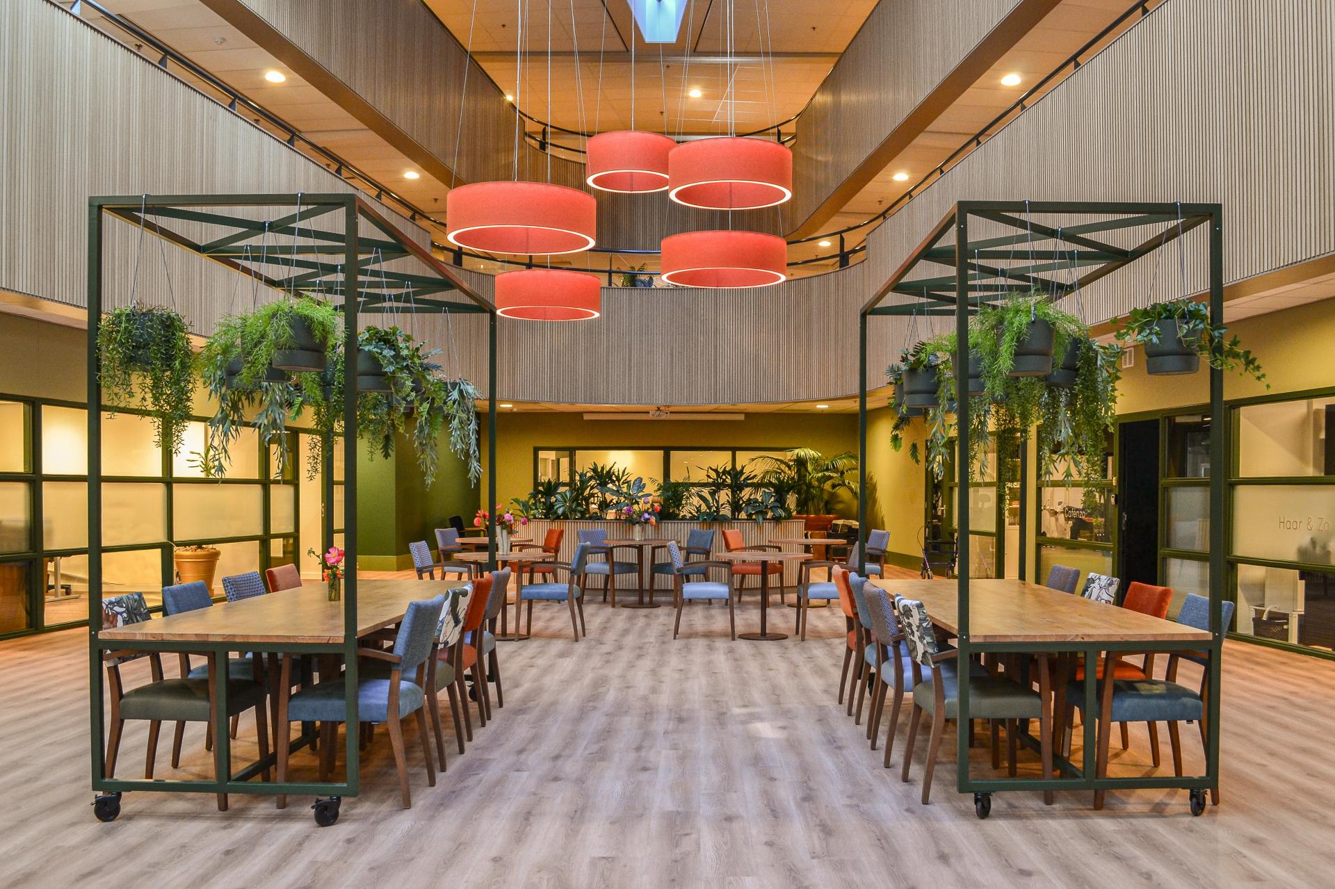 Bij woonzorglocatie Pleyade Waalstaete in Arnhem wonen ouderen zelfstandig, met ondersteuning waar nodig. Deze omgeving vraagt om rust, herkenbare kleuren en een huiselijke sfeer. Wij mochten hier de inrichting verzorgen van diverse huiskamers, gangen en het centrale atrium. Alle elementen zijn samengebracht in een harmonieus totaalconcept dat comfort en herkenbaarheid uitstraalt. Het centrale atrium |