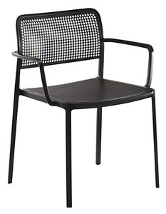De Audrey A heeft een zitting en rugleuning van 'geweven' kunststof. Deze geven de stoel een luchtige uitstraling. Het is een eclectische stoel die aluminium en plastic combineert tot een veelzijdige en hedendaags geheel. De stoel is multifunctioneel en geschikt alle soorten gebruik.
