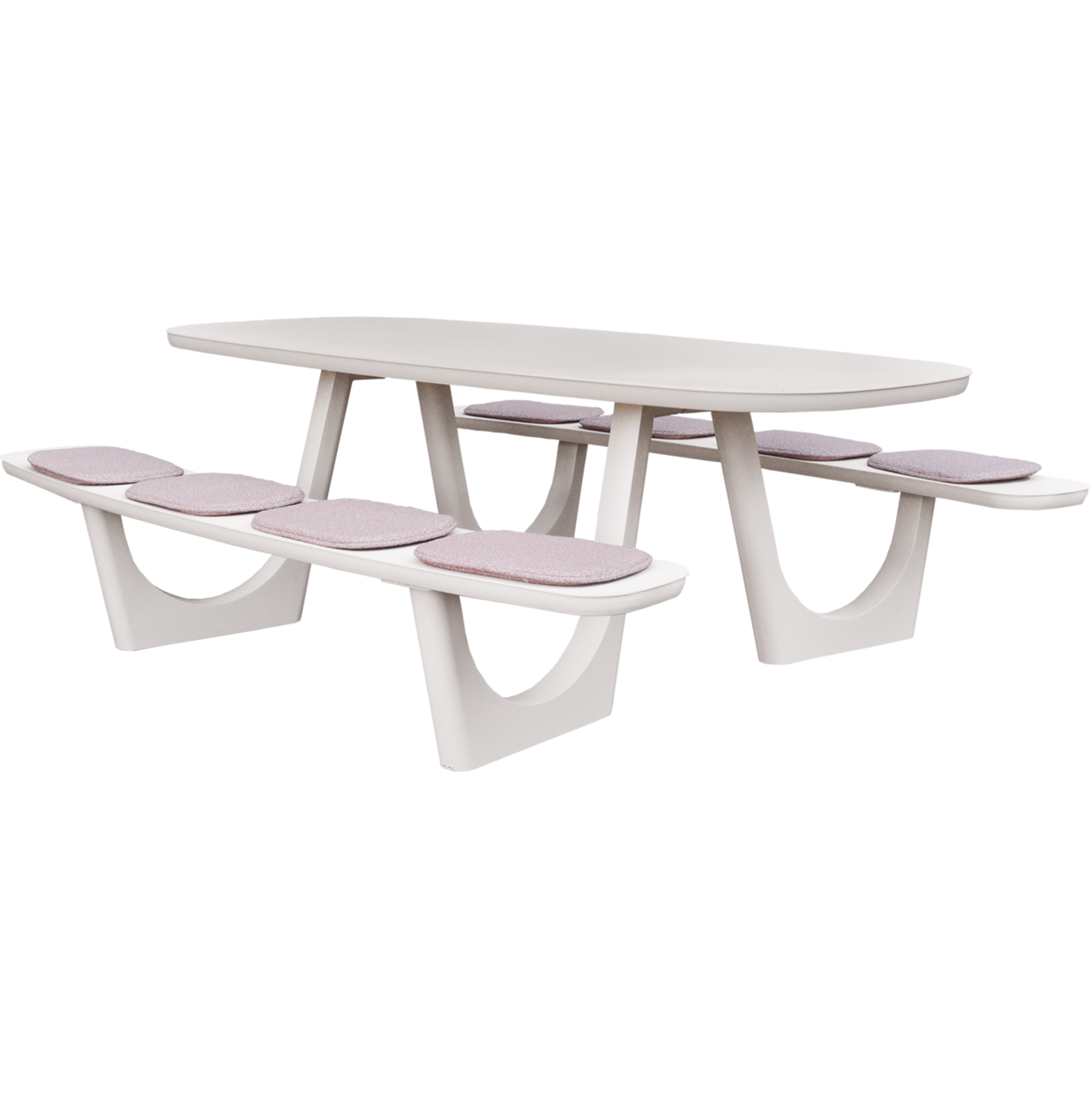 De Clogs Picknick bank heeft organische vormen en past mooi op een terras.