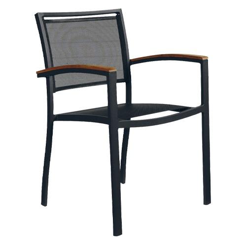 Onze Cordoba is een eigentijdse en moderne terrasstoel. Hij past op vele terrassen omdat hij makkelijk te combineren is met vele interieurstijlen. Daarnaast is het ook een praktische stoel, want hij is stapelbaar en makkelijk schoon te houden. Allemaal met een teak armleuning, aluminium frame en batyline zitting.