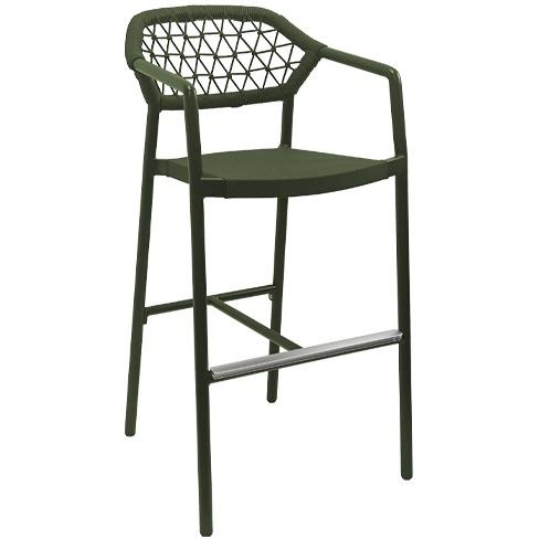 De Demi S is een eigentijdse barkruk met een open, gevlochten rugleuning die direct in het oog springt. Het zwarte metalen frame zorgt voor een strakke en robuuste uitstraling, terwijl de vormgeving luchtig en toegankelijk blijft. Deze kruk combineert comfort met karakter en is zowel binnen als buiten een echte blikvanger. Ideaal voor horeca, thuis aan een keukeneiland of in een moderne buitenruimte.