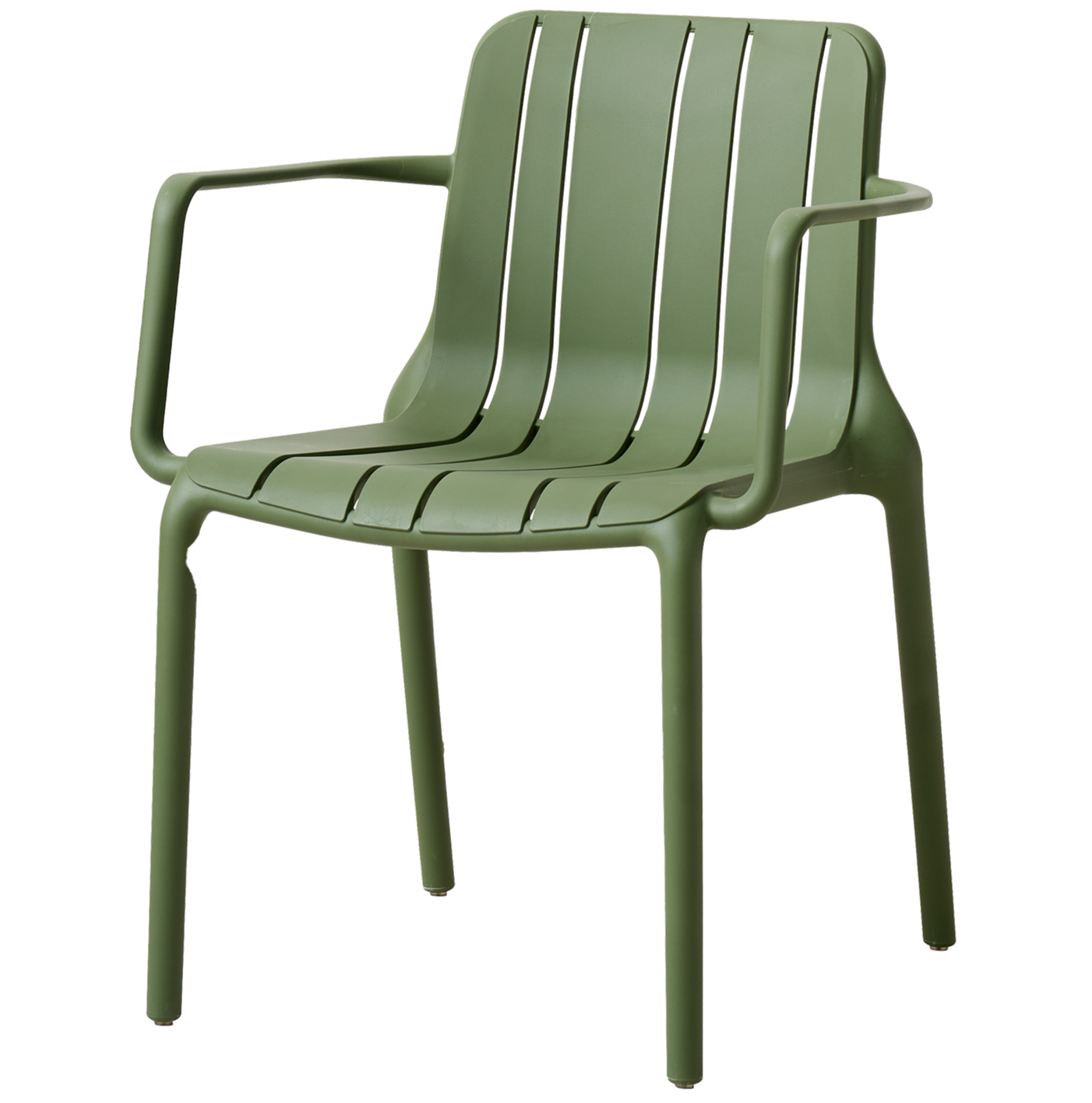 De Drift A groen is een comfortabele en onderhoudsvriendelijke terrasstoel. De licht gebogen zitting en rugleuning zorgen voor een aangename zit, terwijl de armleuningen extra steun bieden.