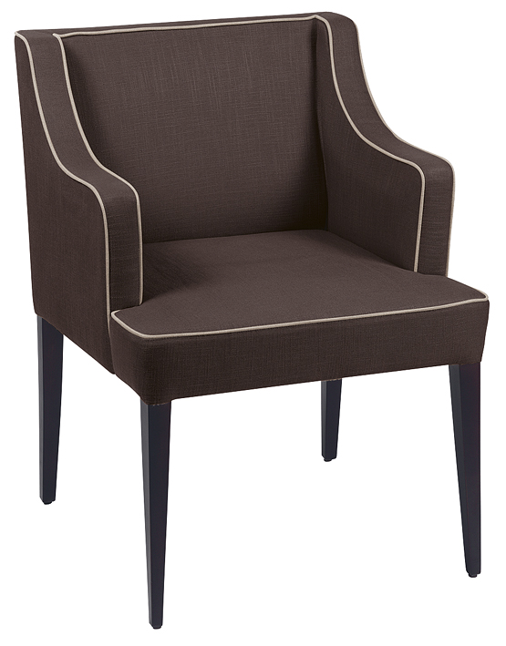 In een combinatie van stof en leer met opvallende bies, is dit een heerlijke comfortabele stoel met armleuning.