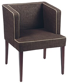In een combinatie van stof en leer met opvallende bies, is dit een heerlijke comfortabele stoel met armleuning.