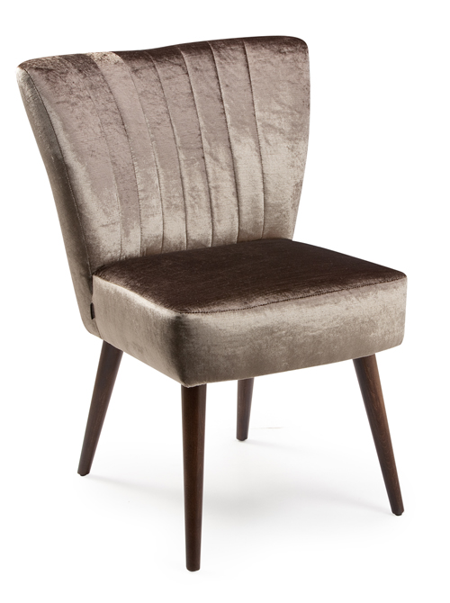 De Haga 5 is een stijlvolle en functionele fluwelen stoel met houten poten. Door het werkje in de rugleuning krijgt de stoel een speelse uitstraling.