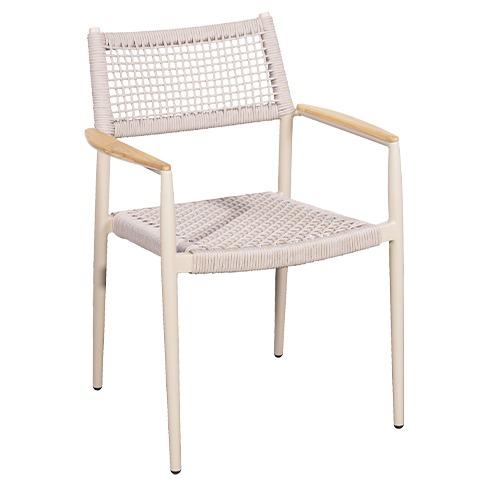 Met een tijdloos ontwerp in stralend wit, gecombineerd met een warme teak armleuning, is deze stoel een symbool van verfijning en elegantie voor elke buitenruimte. De Madrid nodigt uit tot ontspanning met zijn gevlochten rugleuning en zitting, die een subtiel en toch opvallend contrast creëren met het witte frame. Deze combinatie van materialen biedt duurzaamheid en comfort voor langdurig gebruik.