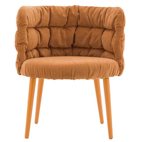De gestoffeerde Maja stoel laat zich kenmerken door de typische stoffering op de rugleuning. De gesmokte stoffering geeft meteen een hele knusse sfeer. Daarnaast is de Maja stoel verkrijgbaar in drie soorten frame opties.