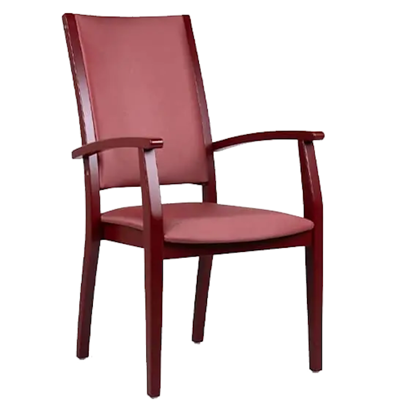 De Port A High zorgstoel heeft een stevige en stabiele stand met haar beukenframe en de beste ergonomie. De armleuning is licht gebogen en heeft aan de voorkant een afgeronde knop. De bekleding un de rug en zitting is comfortabel en biedt een goed zitcomfort voor lang zitten.