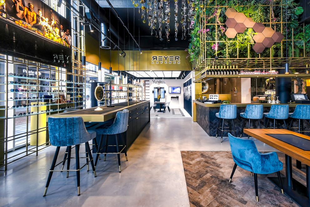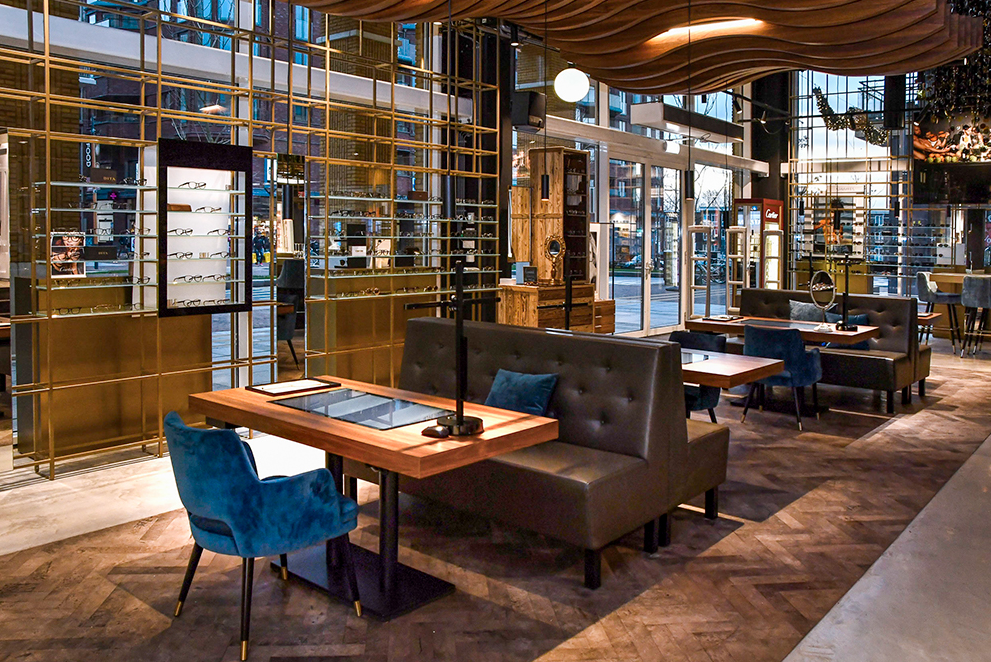 Een zaak waar dat uitermate goed gelukt is, is optiekwinkel Reyer Lafeber in Utrecht. Daar is door verschillende partijen een waar brillenwalhalla gecreëerd, inclusief bar en verschillende zitmogelijkheden om de bezoekers te adviseren. In koninklijk velvet met gouden pootjes, komen onze Kelly stoel en Noble kruk goed tot hun recht in dit interieur. |