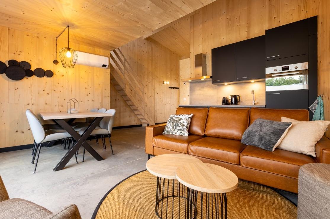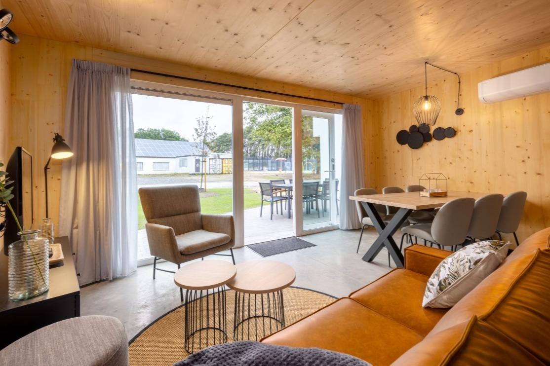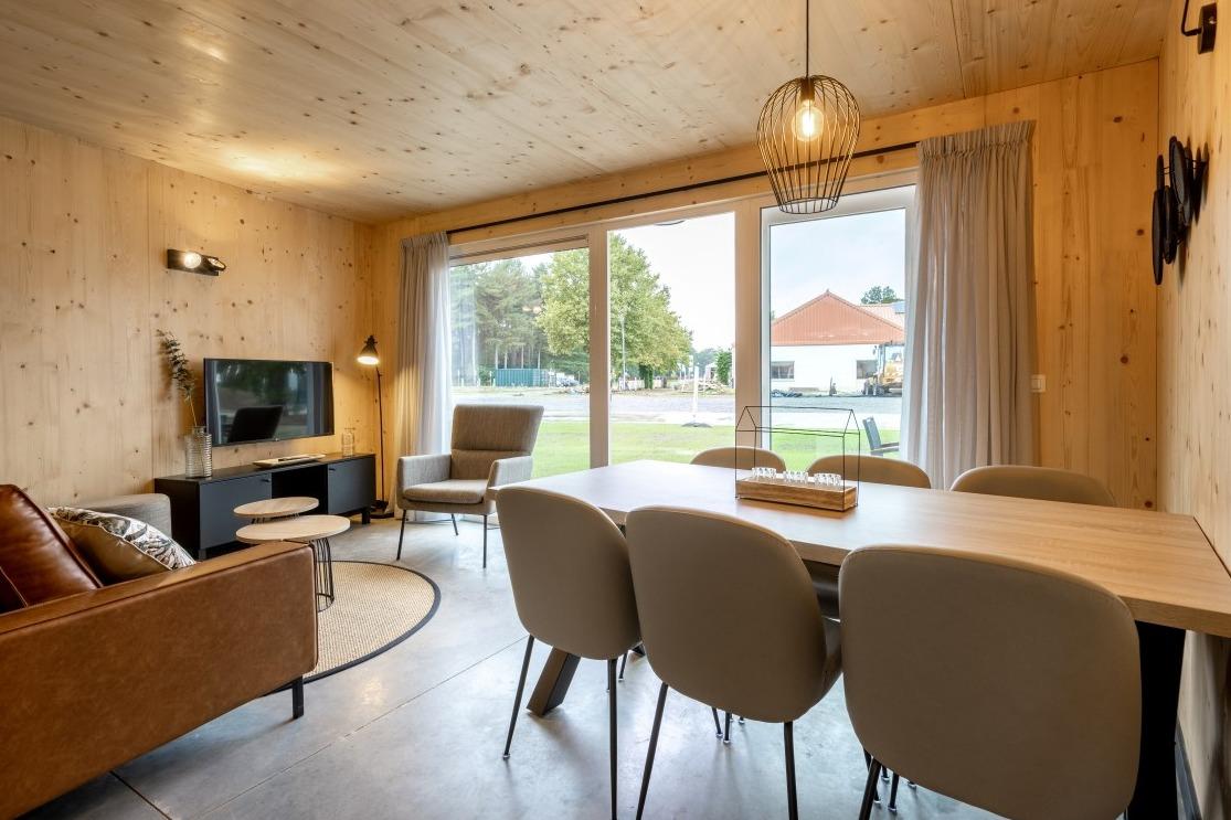 Door de Coronacrisis zijn we ons meer en meer bewust geworden van de noodzaak om te onthaasten. En dat wordt erg lastig wanneer je in dezelfde woning werkt, slaapt, ontspant en leeft. ‘A change of scenery’ kan daaraan bijdragen. Even weg van de sleur van alle dag en de natuur in! Het nieuwe en kleinschalige Roompot Park Eksel is daar de perfecte uitvalsbasis voor. Een modern en bovenal duurzaam vakantiepark met 121 woningen, die wij mochten voorzien van een sfeervol interieur. Inrichting Roompot Park EkselDe 121 vakantiewoningen zijn onderverdeeld in 4, 6 en 16 persoons woningen en zijn allemaal ingevuld met dezelfde interieurstijl. Er is een neutrale, warme sfeer gecreëerd die perfect aansluit bij de houten wand- en plafondbekleding. De betonlook vloer zorgt voor een stoere tegenhanger in het geheel. |