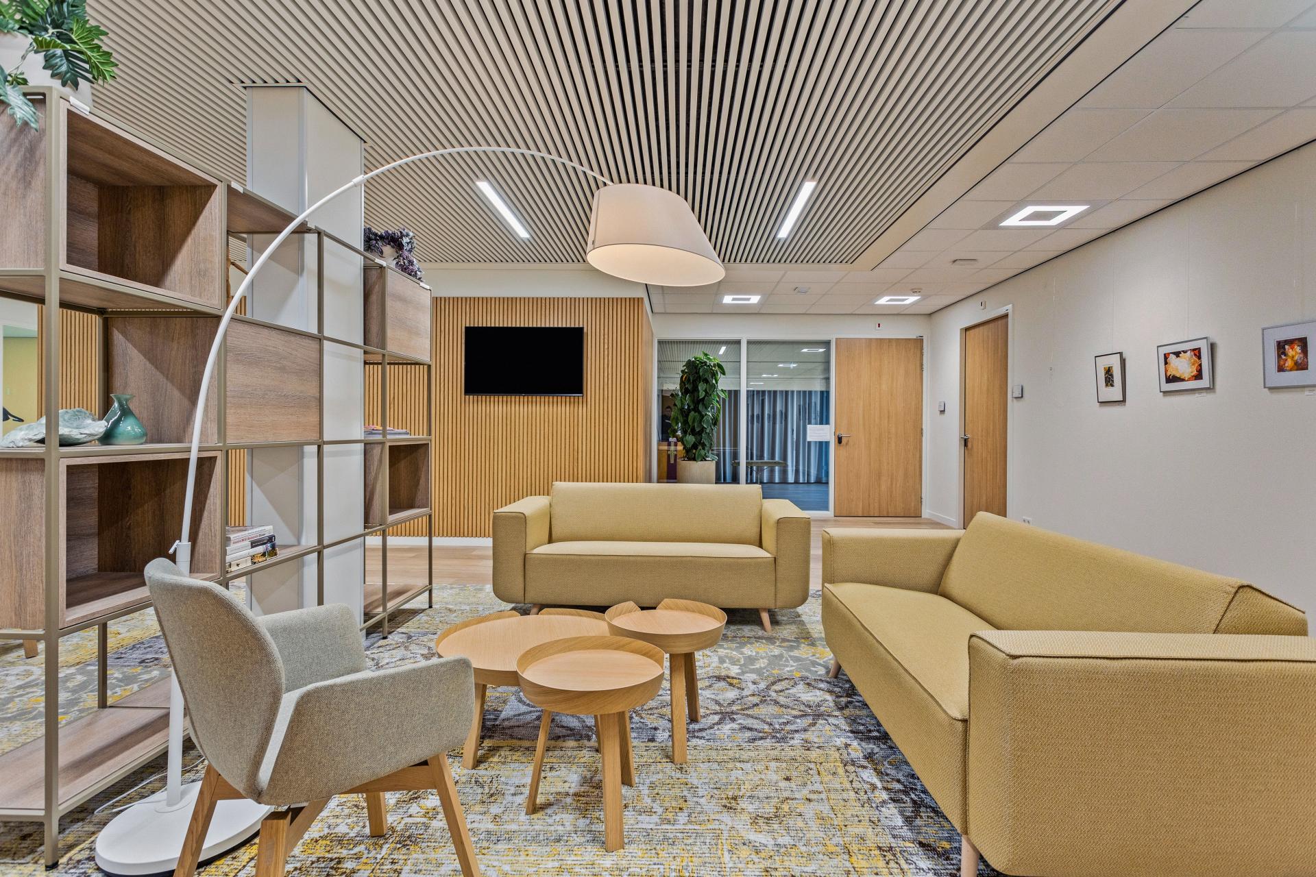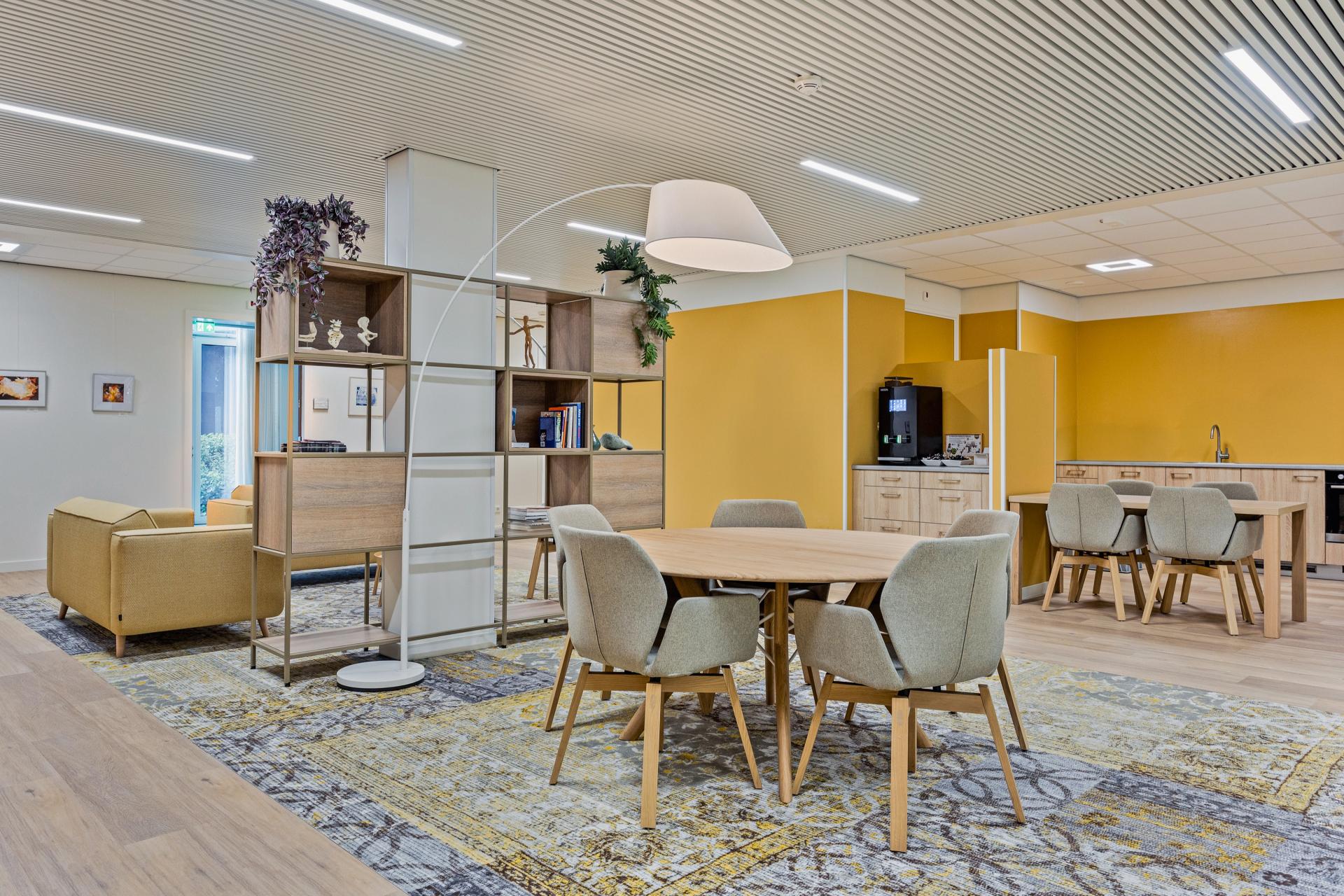 De hele locatie straalt een moderne én warme sfeer uit. Cliënten en medewerkers voelen zich direct op hun gemak dankzij het interieur, dat praktisch en degelijk meubilair combineert met comfort en stijl. De gele kleuraccenten geven een frisse, uitnodigende uitstraling en zorgen voor eenheid en karakter in de verschillende ruimtes. Dit project laat zien hoe interieur niet alleen bijdraagt aan functionaliteit, maar ook aan welzijn in de zorg.
