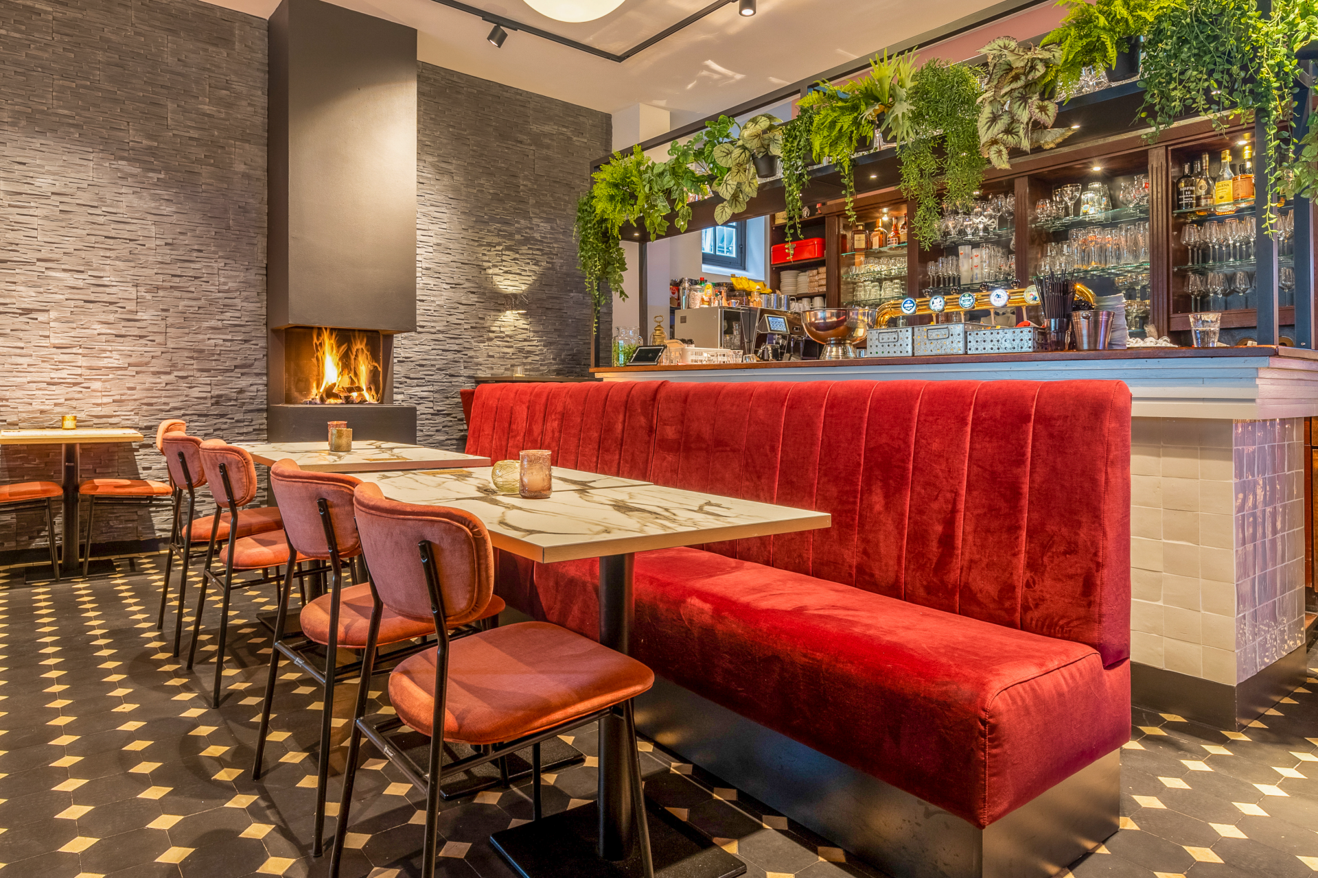 Zelden zagen we dat het interieur zo toepasselijk was bij de naam van de locatie. Want een ding is zeker, van dit interieurconcept staat menig bezoeker in vuur en vlam. De kleurkeuze is niet alleen helemaal volgens de laatste trends, ook straalt het warmte uit en zorgt het voor een knus en huiselijk geheel. |