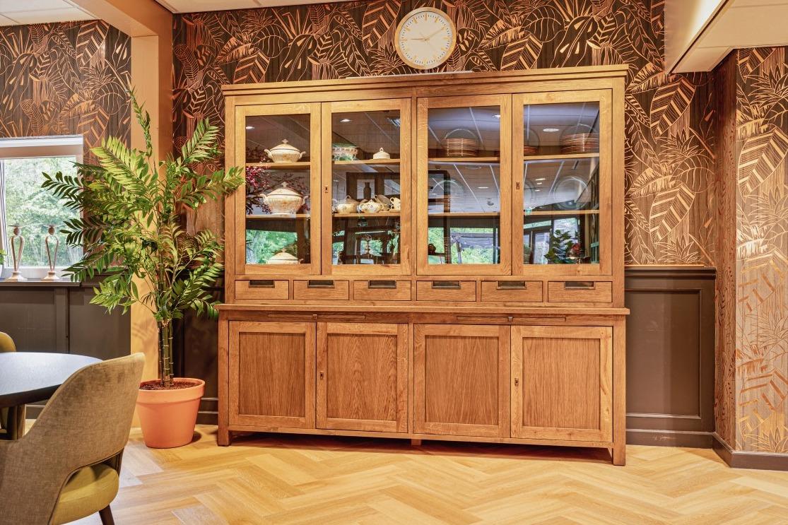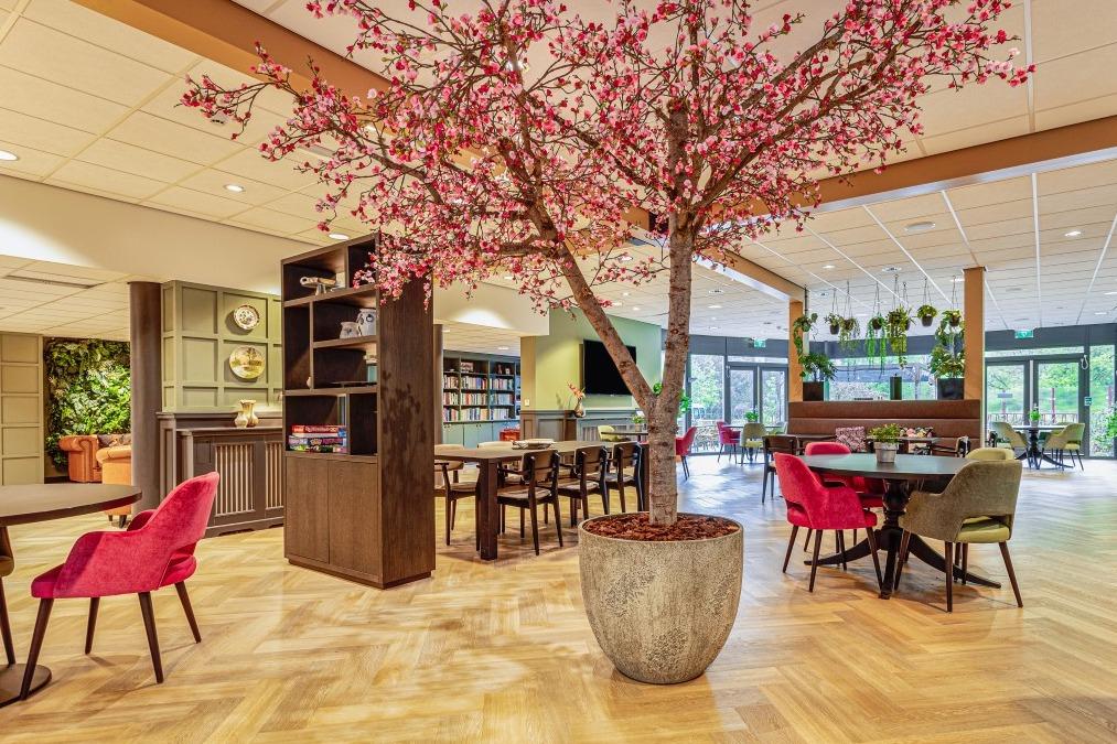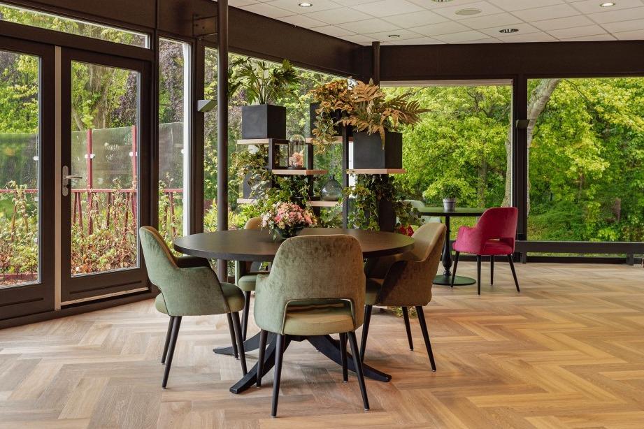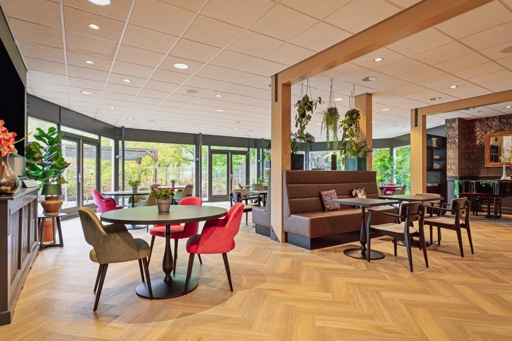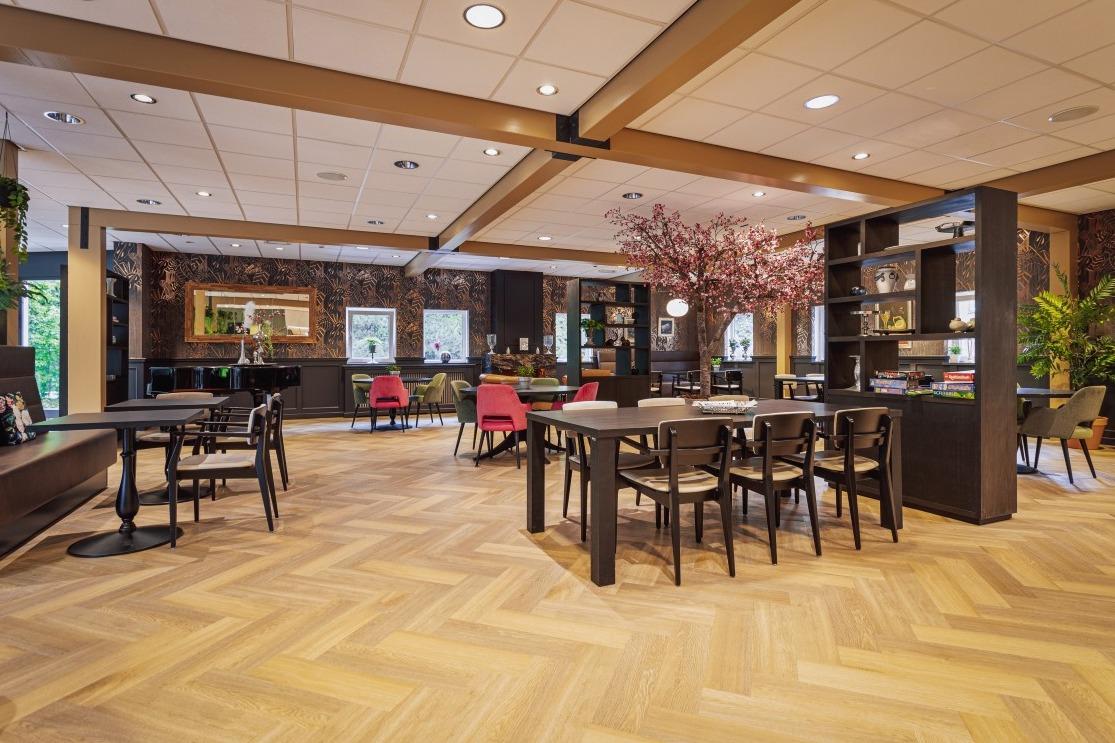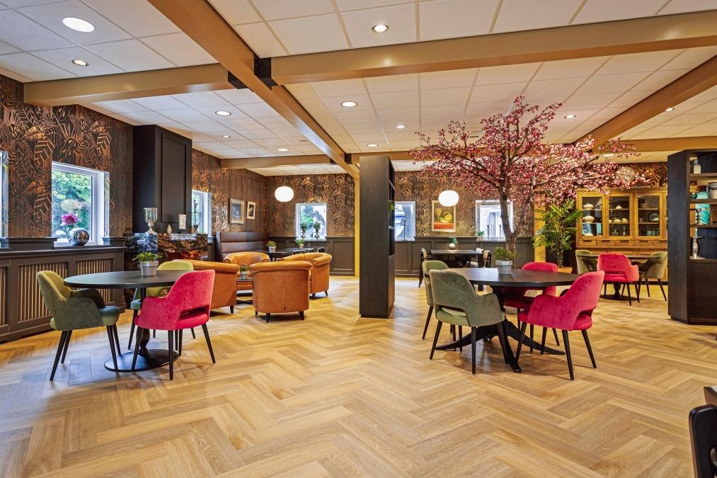 Aan de rand van Heemstede, omringt door bos en groen, ligt woonzorgcentrum Kennemerduin van Zorgbalans. In Kennemerduin wonen 86 ouderen, die (tijdelijk) niet meer zelfstandig kunnen wonen en verzorging en begeleiding nodig hebben. Voor rust en privacy kunnen de bewoners zich terugtrekken in hun eigen appartement. Maar wanneer ze hun medebewoners op willen zoeken of samen willen eten dan kan dit in het centrale restaurant. En dat restaurant heeft een warm en eigentijds interieur gekregen met zitgelegenheid voor 70 personen. Luxe restaurant Het restaurant mocht niet teveel aanvoelen als een woonzorgcentrum, dat was een van de eisen van het nieuwe interieur. Het moest een luxe, warme en uitnodigende sfeer krijgen en meer aanvoelen als een hotel. Interieurarchitect Mike Groot en onze interieurontwerper Danniek Brok gingen met deze wensen aan de slag. |