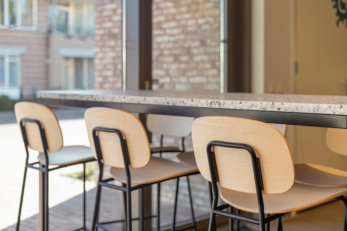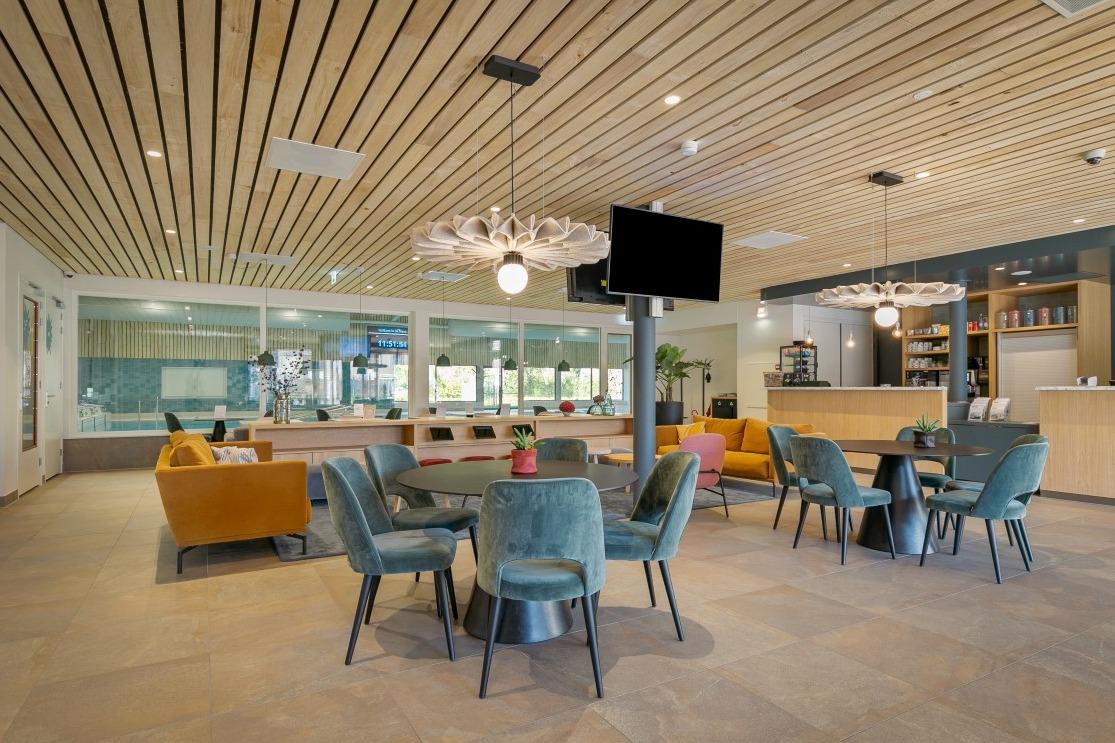 In het pittoreske Sint Oedenrode kan er volop worden gezwommen in het nieuwe, centraal gelegen zwembad De Neul. Het duurzame zwemcomplex is voorzien van de nieuwste innovaties. Door de beweegbare bodem kunnen minder valide mensen ook gebruik maken van het zwembad en is er een drenkelingdetectiesysteem geïnstalleerd. Wij mochten voor zwembad De Neul een sfeervolle en toegankelijke ontmoetingsruimte creëren. Waar men even kan wachten, een kop koffie kan drinken en de zwemkunsten van je kind kan aanschouwen. Zwembad Lobby Toen interieurdesigner Bo Kiepen-Roest begon met het ontwerp voor deze ontmoetingsruimte, zocht zij naar het juiste gevoel dat de ruimte moest uitspreken. “In een dergelijke ruimte hoeft niks, je mag een kop koffie of een broodje bestellen, maar je mag ook gewoon rustig zitten, wachten en kijken naar de zwemprestaties van je kind.” Bo zag overeenkomsten met een hotel lobby, waar mensen worden ontvangen, wachten en even een kop koffie drinken. Diezelfde fijne en toegankelijke sfeer wilde zij nabootsen in de ontmoetingsruimte van het zwembad. Dat begint al bij de op maat gemaakte balie/receptie. Deze is rolstoelvriendelijk gemaakt door een lager blad in het midden toe te voegen. De afgeronde hoeken en het lichte houten afwerking zorgen voor een rustige en toegankelijke sfeer. |